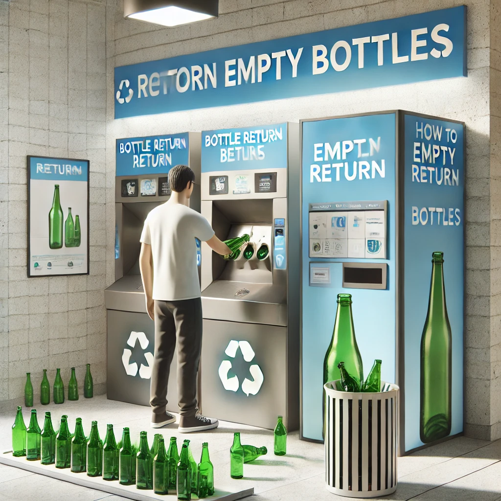 Almanya’da depozito sistemi, satın alınan içecek şişelerine ek bir ücret ödenmesini ve bu şişelerin geri dönüşümü karşılığında bu ücretin iade edilmesini içerir. Bu sistem, hem plastik hem de cam şişeler için geçerlidir. Şişeler, genellikle süpermarketlerde bulunan geri dönüşüm makinelerine iade edilir.