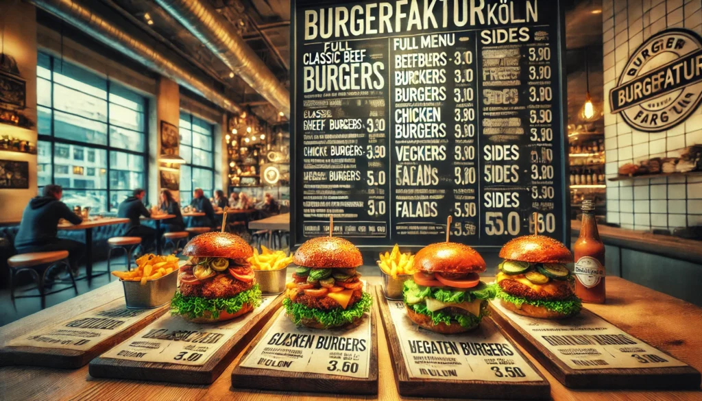 Köln’de burger sevenlerin favori mekanlarından biri olan BURGERFAKTUR, kaliteli malzemelerle hazırlanan gurme burgerleri ile bilinir. Hem klasik burgerler hem de yaratıcı ve benzersiz kombinasyonlarla sunulan lezzetler, BURGERFAKTUR’u burger severlerin vazgeçilmez adreslerinden biri yapıyor. Taze malzemeler, kaliteli et ve vegan seçenekleri ile geniş bir yelpazede hizmet veren BURGERFAKTUR, uygun fiyatları ve doyurucu porsiyonları ile dikkat çekiyor. Bu yazıda, BURGERFAKTUR’un menü fiyatları ve sunduğu tam menü seçeneklerini inceleyeceğiz.